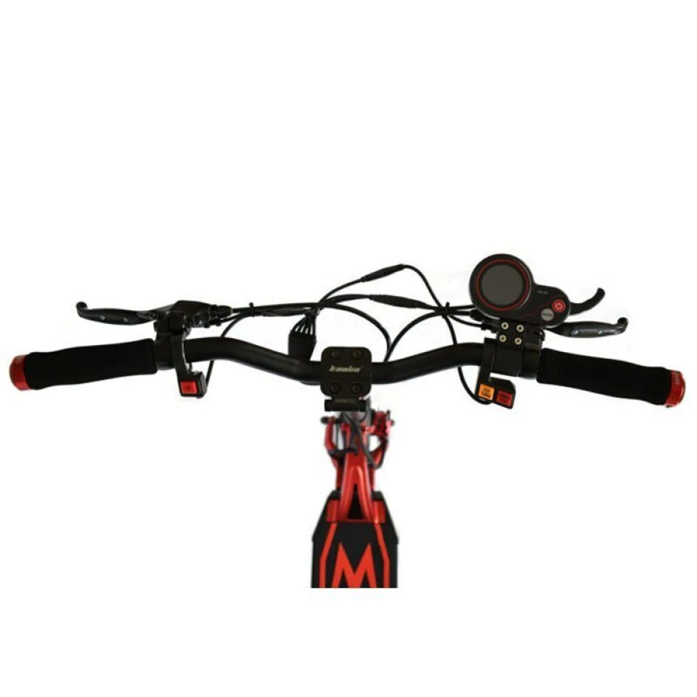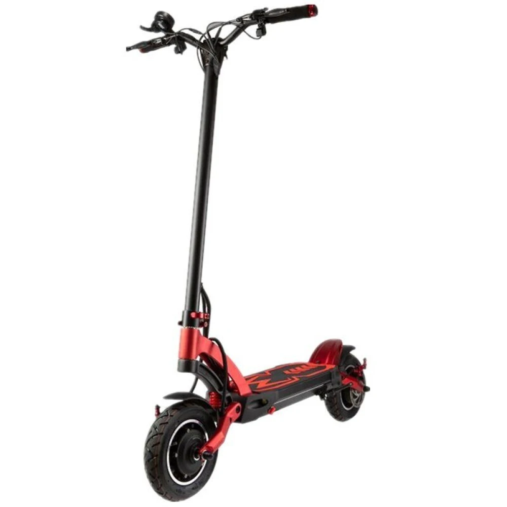 При весе 28 кг грузоподъемность техники составляет 130 кг, рассчитана на подростков и взрослых райдеров. Современная яркая модель создана для победителей, стремящихся к совершенствованию, познанию нового. Техническая часть электросамоката оснащена по максимуму, имеет все необходимое для скоростной езды, способна выжимать 65 км/час и преодолевать на одной подзарядке до 80 км пути.