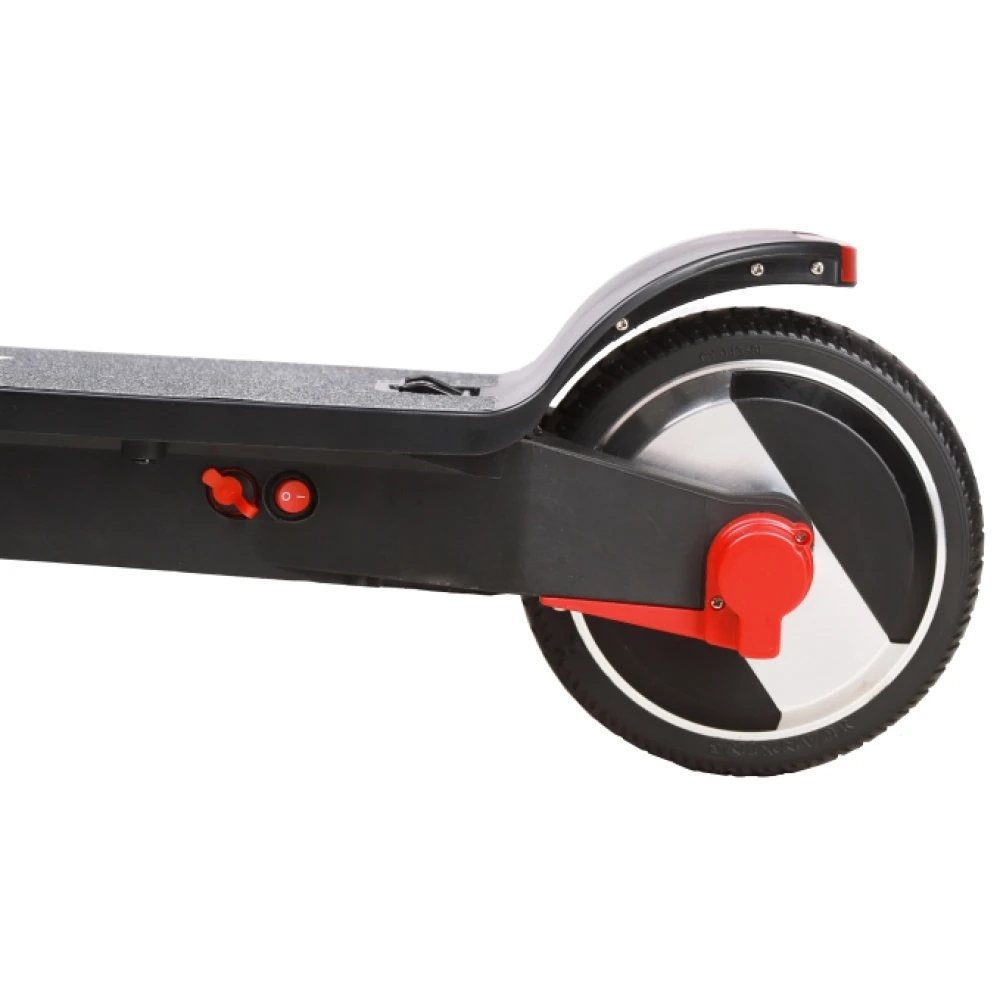 Не дорогой и качественный городской электрический самокат со скоростью 25 км / ч, мощностью мотора 250 Вт, а тормоза на передних и задних колесах позволяют регулировать движение. В комплект входит литий-полимерный аккумулятор, который можно зарядить за 4 часа, а емкости в 5 А / час достаточно для автономной работы 17 километров. Колеса диаметром 8 дюймов.