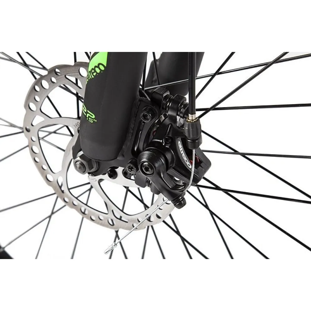 Ещё одна новинка этого года от компании Eltreco – двухподвесный электровелосипед  Walter. Новинка имеет актуальные 27,5-дюймовые колёса, которые позволяют с лёгкостью передвигаться по различным поверхностям, удобно преодолевать неровности рельефа и при этом дают велогибриду максимальную манёвренность. Прочная алюминиевая рама имеет в своей конструкции дополнительный амортизатор для усиления мягкости движения и интегрированную съёмную батарею. Также на велосипеде установлена амортизационная вилка с блокировкой хода для подбора наиболее удобного режима при поездке по разным рельефам. Велогибрид Walter имеет простую, но качественную 7-скоростную трансмиссию и практичные дисковые механические тормоза.