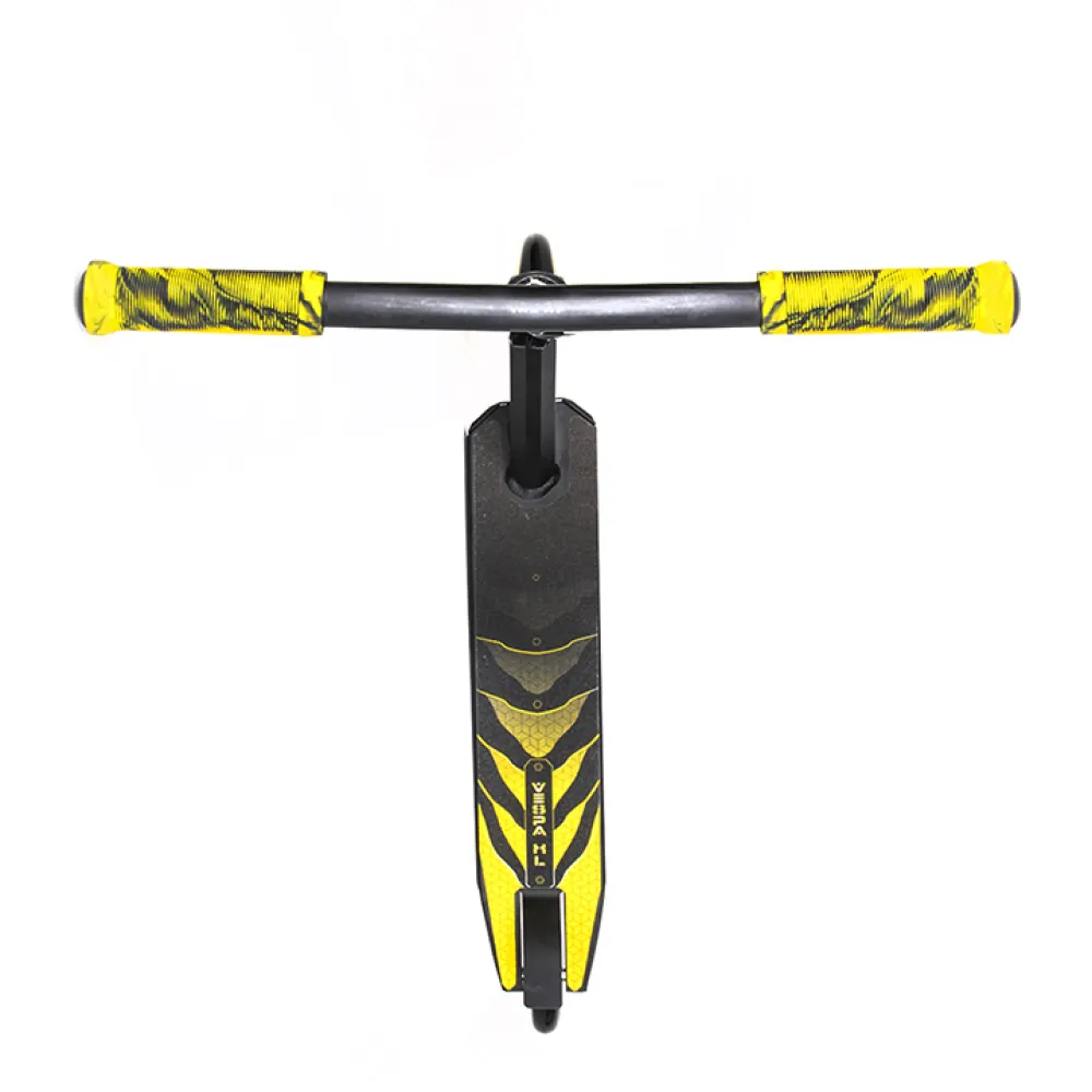 Произведенный в классически черном цвете самокат понравился отечественным пользователям и юным райдерам из СНГ благодаря техническим характеристикам. Простая в управлении техника обещает отличное время провождение, станет надежным другом в освоении новых навыков мастерства. Рулевая часть изготовлена из долговечной стали, дека – их легкого алюминиевая, по длине, ширине и расстоянии ног имеет размеры длину 48 см*10см*32,5см. Прорезиненные грипсы не допускают соскальзывание рук при исполнении трюков. 100-мм колеса в сочетании с учением райдера способны разогнаться до максимальных скоростей, сделать возможное, чтоб трюк состоялся.