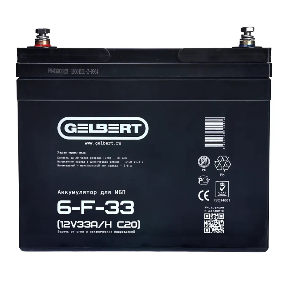 Аккумулятор для ИБП Rutrike Gelbert 6-F-33 (12V33A/H C20)